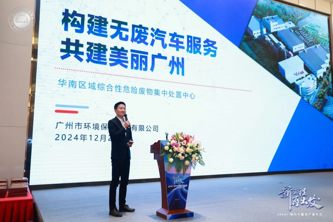 2024年12月24日,廣州市汽車服務(wù)業(yè)協(xié)會主辦以“新征程 再出發(fā)”為主題的“2024廣州汽車服務(wù)產(chǎn)業(yè)年會”,廣州市商務(wù)局、市貿(mào)促會、市工商聯(lián)、市工信局、市公安車管等相關(guān)政府部門領(lǐng)導(dǎo),全國乘用車信息聯(lián)席分會、省市汽車行業(yè)協(xié)會負(fù)責(zé)人,以及廣州地區(qū)汽車經(jīng)銷集團(tuán)、汽車經(jīng)銷店、二手車市場及經(jīng)銷企業(yè)、汽車出口、汽車后市場、汽車金融保險等企業(yè)代表齊聚一堂。廣汽商貿(mào)作為廣州市汽車服務(wù)業(yè)協(xié)會會長單位,總經(jīng)理李勇應(yīng)邀出席年會,并攜廣汽商貿(mào)廣州地區(qū)22家成員企業(yè)共同參與。廣州市環(huán)境保護(hù)技術(shù)有限公司(以下簡稱環(huán)保技術(shù)公司)總經(jīng)理彭長武在會上做“構(gòu)建無廢汽車服務(wù) 共建美麗廣州”主題分享,為汽車行業(yè)固廢和環(huán)境管理提出專業(yè)化建議和解讀。